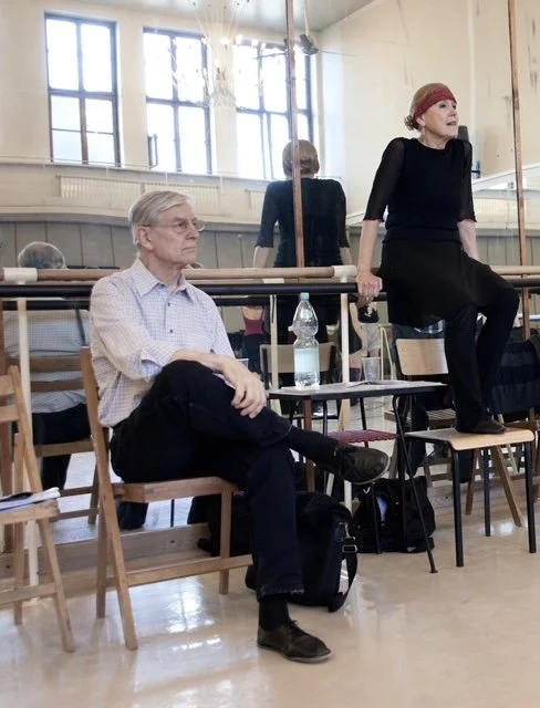 Rehearsing the reconstructed Rite of Spring at the Polish National Ballet in 2011, the couple in London, 2020, and checking the Rite decor at the Paris Opera atelier in 1991.